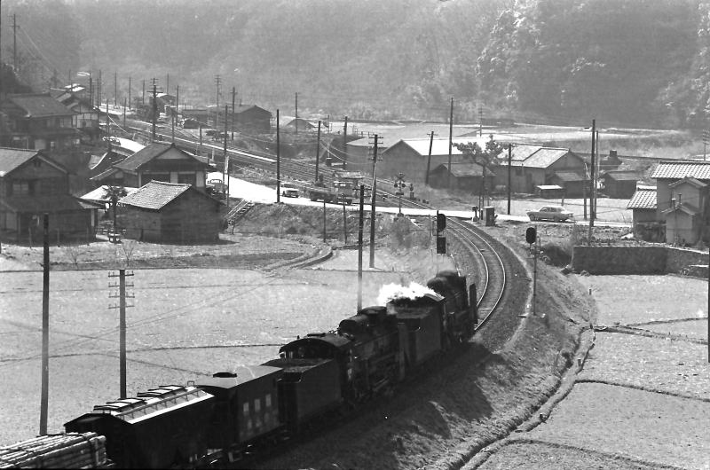 | 昭和46(1971)年3月 備中神代に進入する伯備線貨物列車。 |