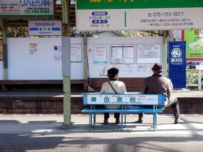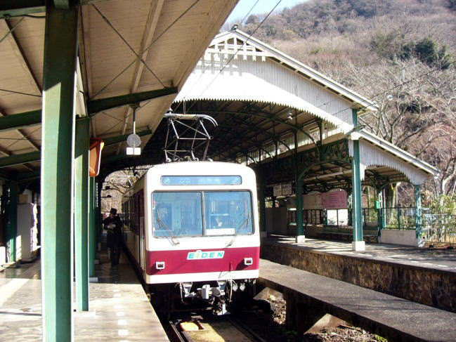 | 正月で混んでいるのは出町柳と鞍馬だけで、途中の駅はまったく静か。 |