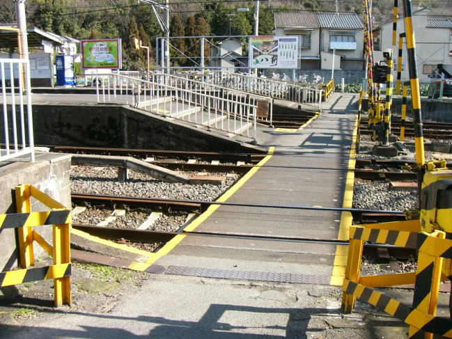 | 一見、駅構内の踏み切りのようですが、普通の道。道から直にホームに上がります。 |
