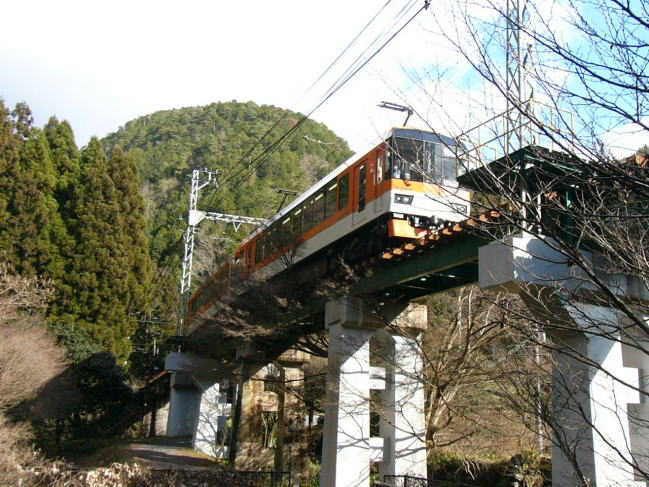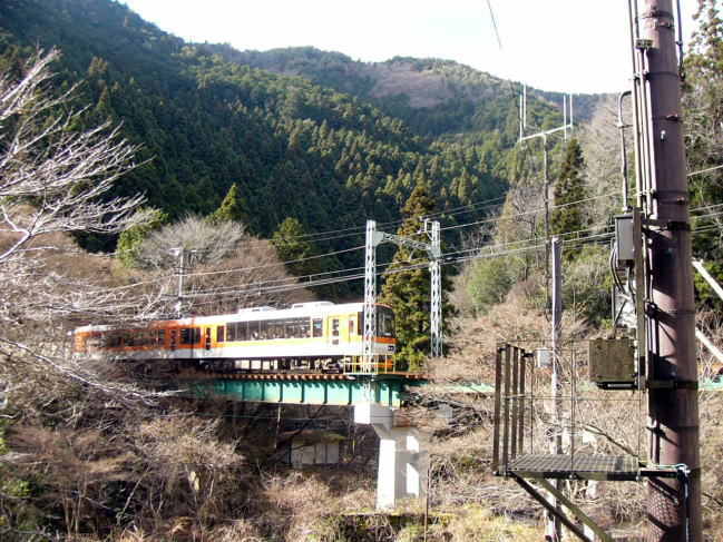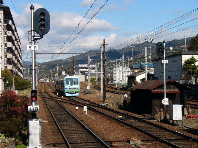 | 豆鉄と一緒に前に群がります。 時々猿も横切る叡山電車の線路 |