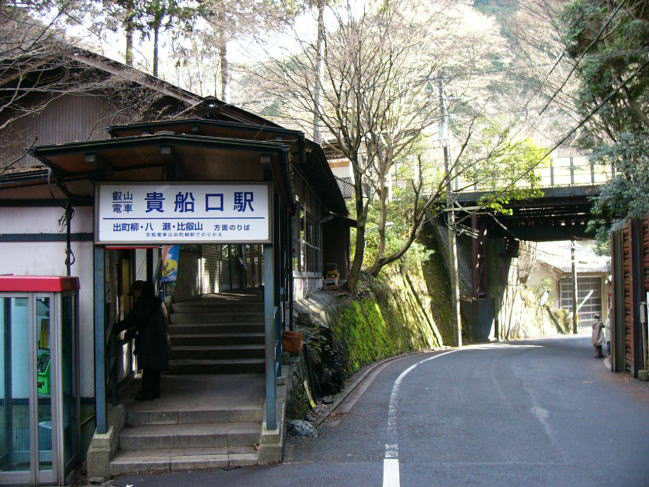 | 貴船口駅の入り口。駅はちゃんと有人で、入り口からホームまでの間に売店兼食堂があります。 |