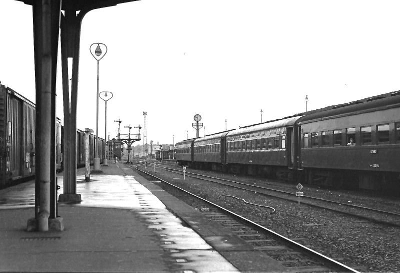| 昭和47年8月 紀勢本線新宮駅 止まっているのは新宮発紀伊長島行き134レ がらがらの列車を見ると、撮るより乗りたくなるのでした。 |
