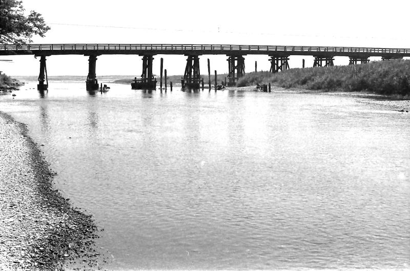 | 太田川にかかる旧国道の木造の橋。今は架け直されています。この橋の下に仕掛けをしてウナギがよく獲れました。 昭和47年ごろ。 |