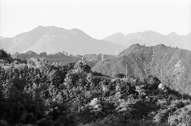 | 山が連なる海と反対側の風景。左の山は那智の妙法山。 |