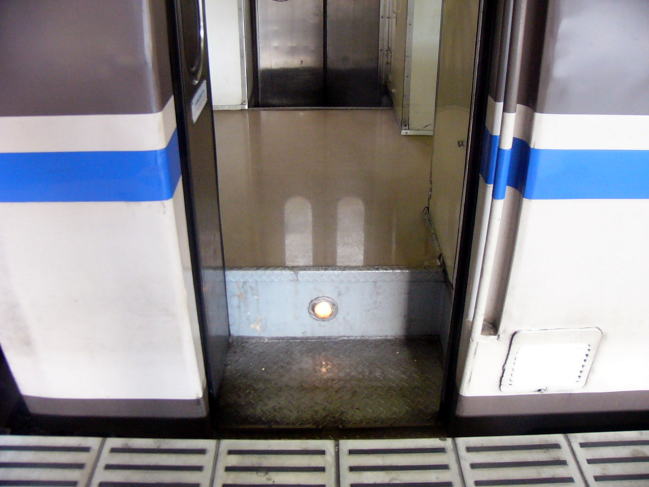 | 出入り口のステップ。バリアフリーの観点からはすでに不合格ですが。幅も狭すぎますね。 |