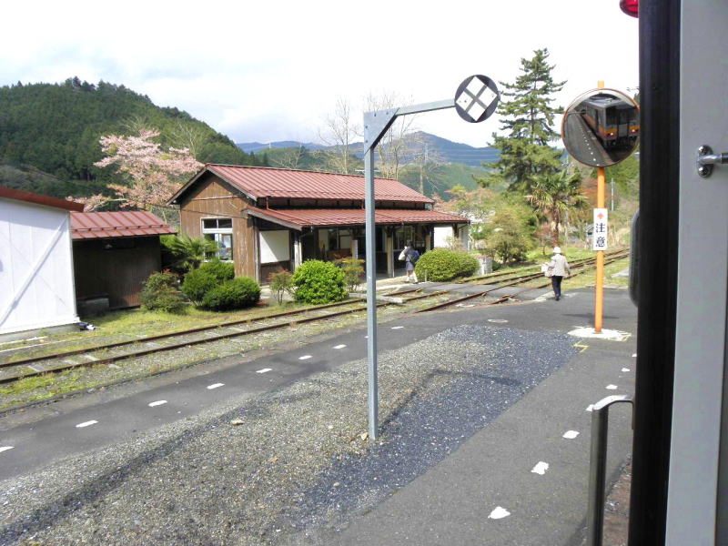 | 知和駅。ポツリポツリと人が降りて行きます。ここから物見トンネルまでの峠の勾配が始まります。 |