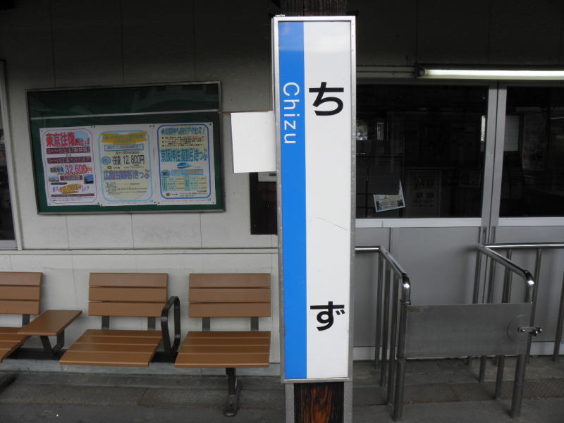 | 文字の間がさびしい智頭の駅名板。しかたない。 |