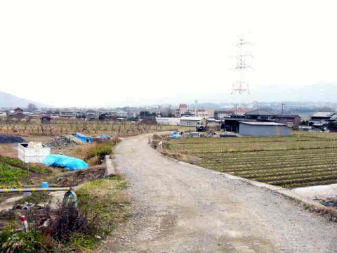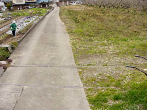 | 道路は線路の溝に完全におかまいなく舗装されています。 家に帰ってからいろいろ検索してみると、つめがえる さんが運営されている 2ch鉄道総合板 昔の航空写真を見てハァハァするスレまとめ というサイトがあり、その中の空中写真分布表近畿編の南海紀ノ川口貨物線跡 という欄にこの付近の1976年当時の航空写真が掲載されていました。 写真によると1976年当時にすでに廃線状態ですが、ちょうどこのあたりで 紀ノ川へ向けて分岐している鉄道線がはっきりと確認できます。 関連する書き込み等によりますと、どうやらこれは、紀ノ川の砂利を運搬するための 貨物線の跡のようです。しかしいったい、いつ頃まで使用されていたのか、 何が走っていたのか、今のところ定かではありません。 |
