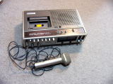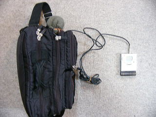 モノラル時代鉄道サウンド(1)に公開している音は最初はすべてカセットテープに録音していたものです。モノラルの音は小さなテープレコーダーで収録したもので、今となってはメーカー・形式などさっぱり分かりません。重さは1キロ程度で別マイクが付いていました。ほんの一時期マイク内蔵式の会議用のテレコを使用したことがあります。これは全く不便で録音中に内部でテープが回転する音が入るのですぐにやめました。ステレオ(カセットデンスケ)昭和49年からは SONY カセットデンスケ TC2850SD を使用。マイクは付属で付いてきたと思う大きなマイクです。形式は文字が擦り切れてしまって「ECTRET C・・・ECM99・・・・」という文字がかろうじて見えるだけです。音質はそれまでのチャチなテレコとは比べ物にならないほどリアルで、「自分でこんないい音が録音できるなんて・・・」と信じられないくらい嬉しかったのをよく覚えています。 しかしデンスケの重さと大きさにはかなり苦労させられました。本体は7kg位あると思います。これを四角いカメラ バッグに入れると、これがまたサイズがぴったりでした。 また、レコーダーの電池の消耗も半端でなく単1電池が一度に4本入ります。それが約2時間ほどの録音で 消耗しました。このため、駅前で電気屋さんを探しまくったことが何度もあります。 ![]() カメラバックの隅に穴を開けてマイクが固定できるようにしていました。このためにバッグが弱くなってしまいました。 上の右端が通常録音するときのスタイル。マイクを手に持つ事もあります 下の左のふたが閉まった状態は混みあっている車内やホームで録音するときのスタイル。 こうすると歩きながら録音も出来ましたが、音質や感度など途中の録音状態は全然チェックできませんので後で地団駄踏むこともしばしばでした。 しかしこの機材はトラブルがなくて使いやすかったです。唯一大失敗したのは北海道の遠軽でマイクを差し込み 忘れたままD51の素晴らしい音を録音したことぐらいです。当然何も録音されていませんでした。 このデンスケは長い間カメラバッグに眠ったままでしたので残念ながら現在は動きません。 録再MDプレーヤー現在の使用機材は録再MDプレーヤー SHARP MD MT 86-S (?) (これも擦り切れています。)マイクはタイピンタイプの audio-technica AT9860。 MDになるとカセットデンスケと比べると音の深みが乏しいのが不満ですが、小さくて軽いので 本当に楽に録音できるようになりました。しかしまた、小さいことが原因で思わぬ失敗をしたこともあります。 まあ、欲を言えばきりがないということです。 ![]() 機材が小さいので録音中はたいていMDプレーヤーを手に持っています。マイクはカバンのポケットに付けますのでプレーヤーをかばんの中に入れたままやると、操作をするときにその音が入ったり、本体が出す変な音が一緒に録音されてしまいます。マイクとMDプレーヤーは必ず離しています。 カバンは、ほとんどマイク装着用に持っているだけで、中はほとんどカラ。それで要らん土産を買ってしまうことが 増えました。 新マイク登場 2006年夏ごろから、レコーダーは録再MDプレーヤーのままでマイクだけ新しいものを使いだしました。 RODE NT-4と言う長くて重いマイクで、これはかなり敏感なマイクです。 図体も重さもあって、手軽なタイピンマイクとは違って機動性がなく使い勝手は最悪ですが 音の違いは歴然たるものがありますので、いまではもっぱらこっちの方ばかり使うようになっています。 ![]() 左は裸のままバッグから出した状態のNT4。バッグにつながっているヒモは落下防止用。 これをしないと、録音が終わってバッグを肩にかけて立ち上がった時にストンとマイクが抜け落ちるのです。 右はバッグに首だけ出して録音体勢の状態。グレーのスポンジは手製の風よけ。 録音時はレコーダーは手に持っています。マイクを突っ込んだバッグは座席に置いたまま触らない! 車内に三脚を立てる勇気がない私としてはこの体勢で、知らん顔をして録音するのが一番自然な音が録れます。 たまにマイクを手持ちする時はすぐにマイクが重くなってきますので、レコーダーを横に置いて両手で支えます。 その時はバッグは完全に無用の長物で、録音していることも周囲の人にバレバレです。 だから、車内がガラガラの時にしかこれはやりません。 鉄道サウンド(2)の紀勢本線のキハ48からは、このマイクで録っています。 この時はマイク手持ちで膝で支えて絶妙バレバレ状態での録音でした。紀州鉄道ページ内の録音もこのマイクです。 しかし今後は多分、全部このマイクで録音することになると思います。 新機種登場 2009年6月頃から、PCMレコーダーなるものを使うようになりました。オリンパスLS-10というものですが マイクと2Gのフラッシュメモリが内蔵されていて、小型軽量にもかかわらず、われわれ老眼の古鉄にも操作しやすく できていて、これはなかなかのものです。 ![]() 写真はオ