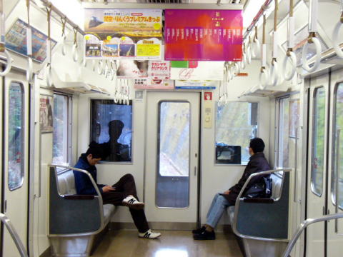 | 極楽橋停車中の2300系の豪華な車内。景色のいい山岳路線にピッタリの 大きな窓。これで「各停」。私はファンになってしまいました。JRも見に来て欲しい。 拡大する |