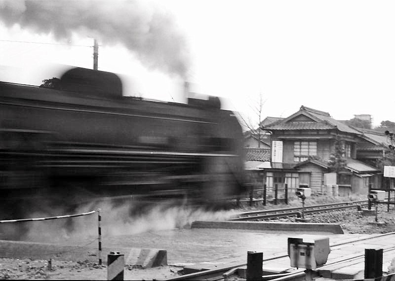 | 中間付近の踏切を通過する、D51 |