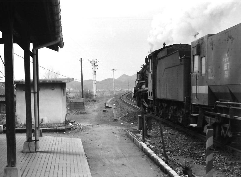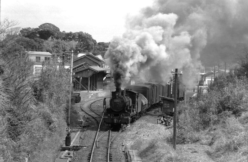 | 松浦線平戸口 ハチロクの牽く貨物列車。当時ここは貨物はもちろん普通列車はすべてSL牽引でした。 |