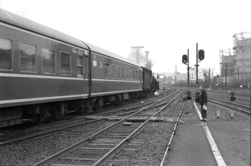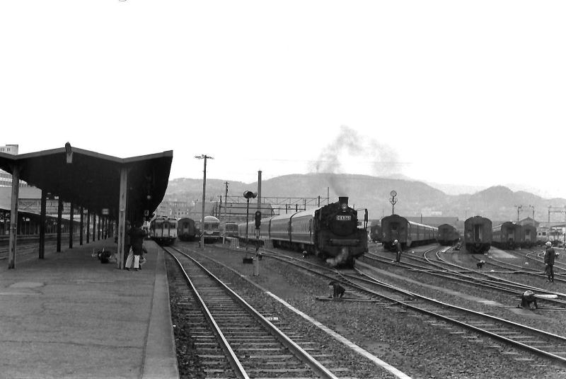 | C57に牽かれて待機線から引き出されるブルートレイン。 |