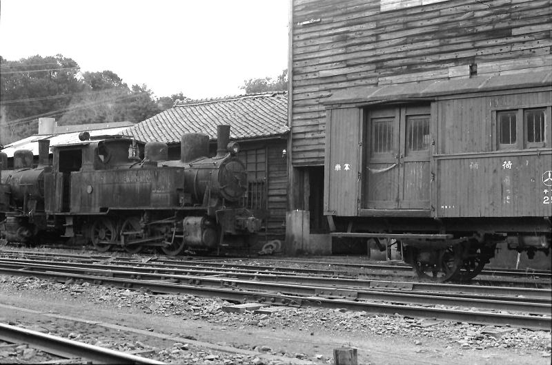 | 同じく加世田にて。まだ走っていたような単車の荷物車と、廃車になっていたSL。 こちらも、もっとよく見ておけばよかった。 |