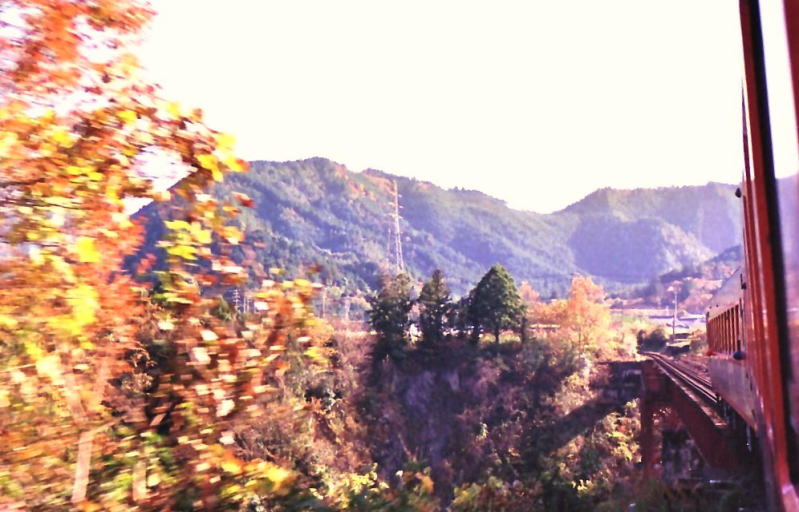 | 同じ列車。保津峡・馬堀間 トンネルの繰り返しで車内も煙だらけでした。 この列車、山陰線内はC57 舞鶴・小浜線内はC58牽引でした。 |
