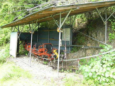 2002年5月 撮影 「謎」というとおおげさですが、熊野から吉野へ抜ける国道169号線。下北山村の池原ダムから少し吉野方面に向かったところにこんなモノレールがあります。今はほとんど動いていないようです。 |