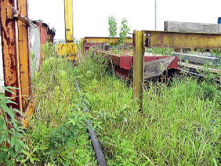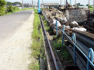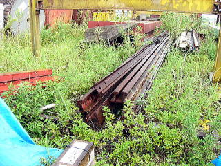 上とは別の会社のクレーンのレール。 使用されていないレールが積み上げられています。 |