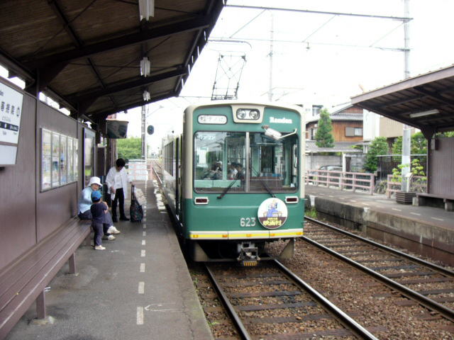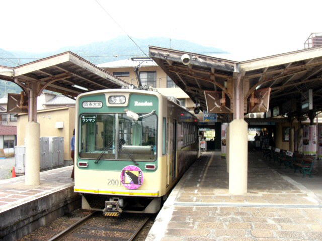 | こちらは嵐電ではなく、京福電車と書かれた北野白梅町駅の看板。梅雨時の中途半端な季節は オフシーズンになるのか、閑散とした雰囲気でした。 この嵐電は、もともと明治43年(1910)に開業した嵐山電車軌道の路線がそのままで 昭和17年、会社は京福電鉄となりましたが、伝統ある嵐電の愛称は消えることなく、 平成19年に再びこの路線の正式名となったそうです。 このあたりがいかにも京都らしいではありませんか。 10分間隔で沿線地域に密着しながら、RandenでWorld Wideでアピールできる位置にある 実は最強のチンチン電車でもあります。 |