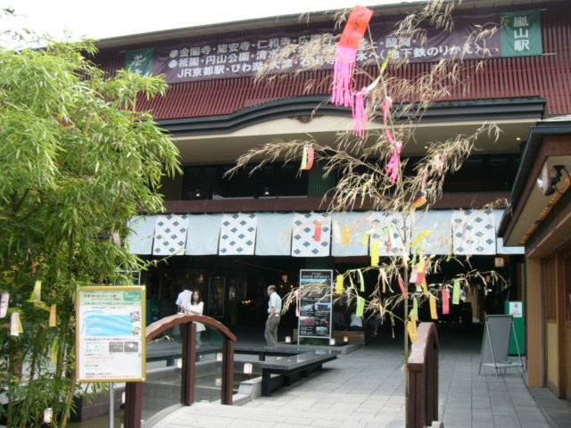 | ちょうど七夕飾りの嵐山駅入り口。駅前には人力車などが客待ちをしていて、この駅では 観光客以外はあまり見ませんでした。自分もそのうちの一人ですが。 |