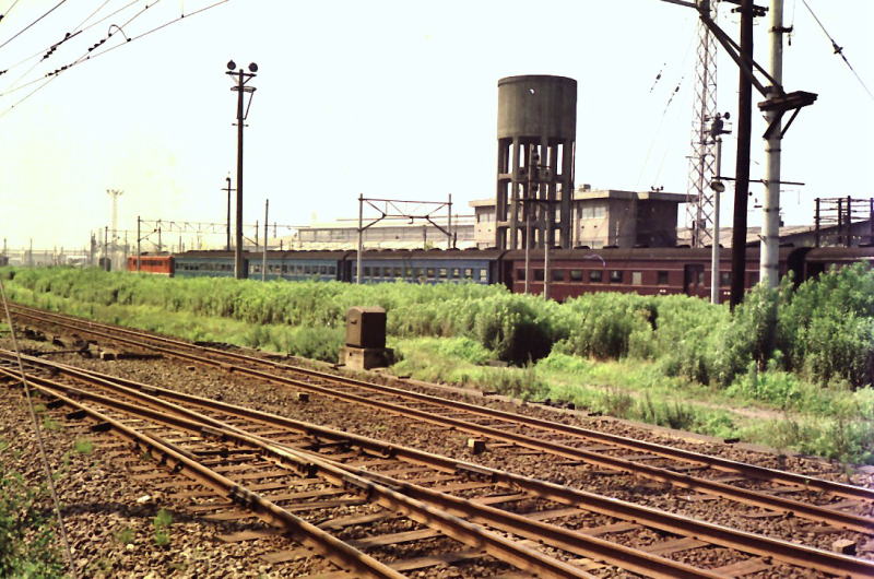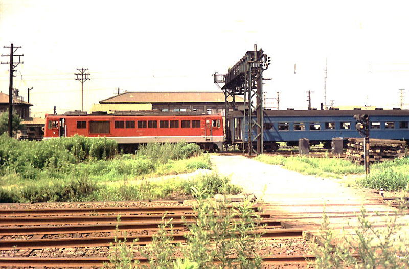 | 加美方向へ走っていく上の列車。現在は久宝寺駅があるあたり。 朝の新宮行きの客車を回送する時は、加美~天王寺間は時刻表には載っていないにも かかわらず、お客を乗せていました。 |