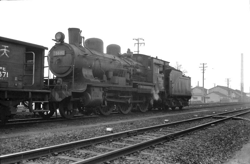 竜華機関区の入り口の踏み切りのあたり。機関車は78680 |