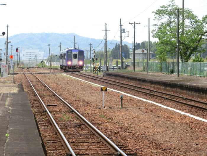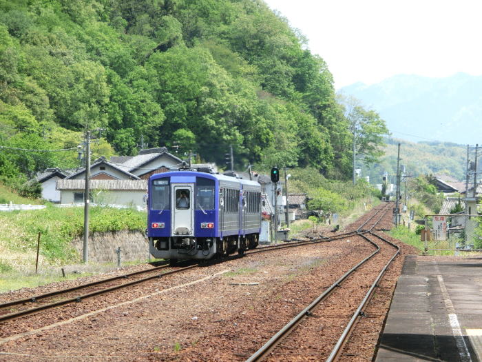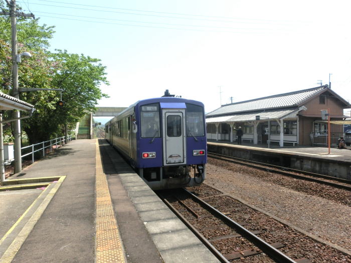 | 乗り降りなしで駅を出て行く亀山行きのキハ120。 |
