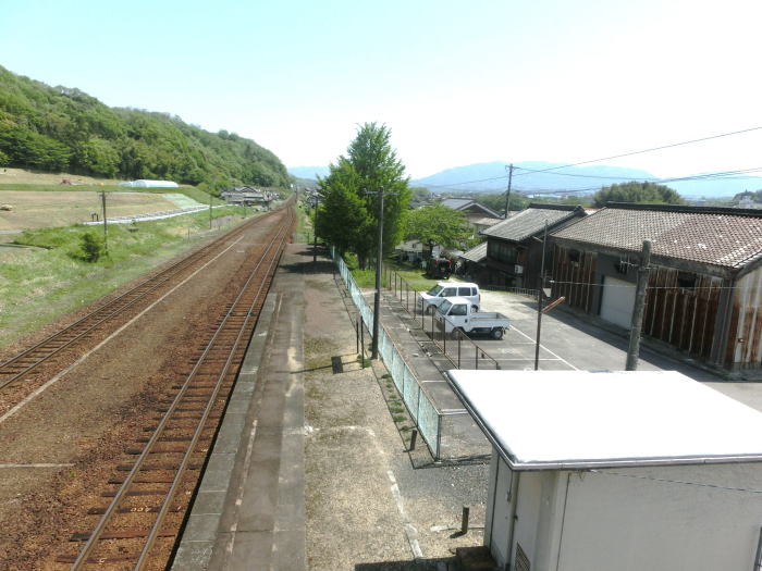 | 跨線橋の上から亀山方向を見る。右手は農業倉庫か。 |
