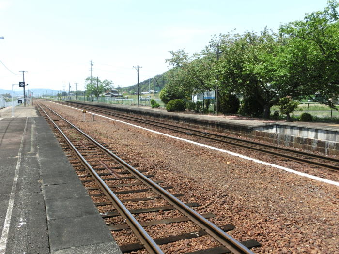 | 伊賀上野方向。長大な貨物列車が交換出来るように作られた、そのままの長い構内。 |