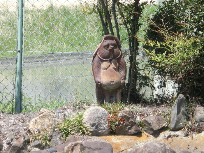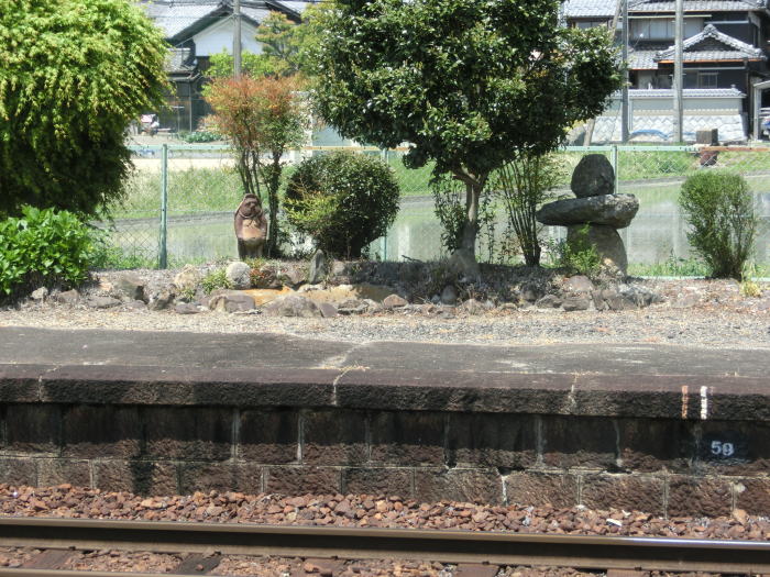 | ホームに池が作られていたようですが、今はタヌキだけが立ち尽くしています。 |