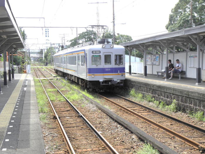 | あっという間に隣の津守駅に到着。珍しく降りる客が居たと思ったら、ご同業のテツ少年。 |