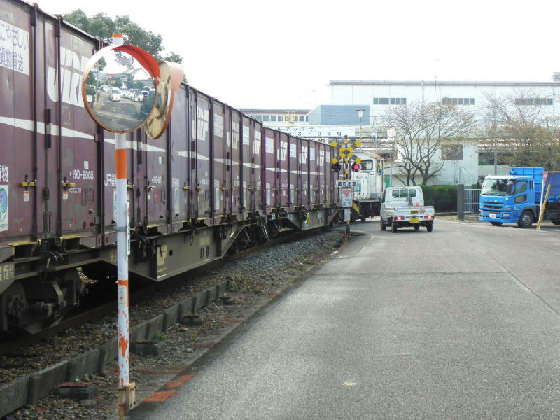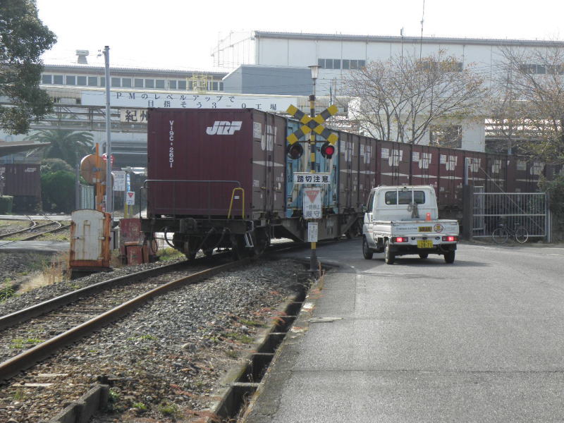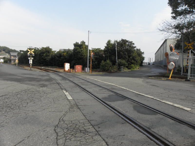 | 駅を出てから、国道42号線を渡る踏切と、ゲート前の広い踏切の間に、一般道との踏切も一か所あります。 |
