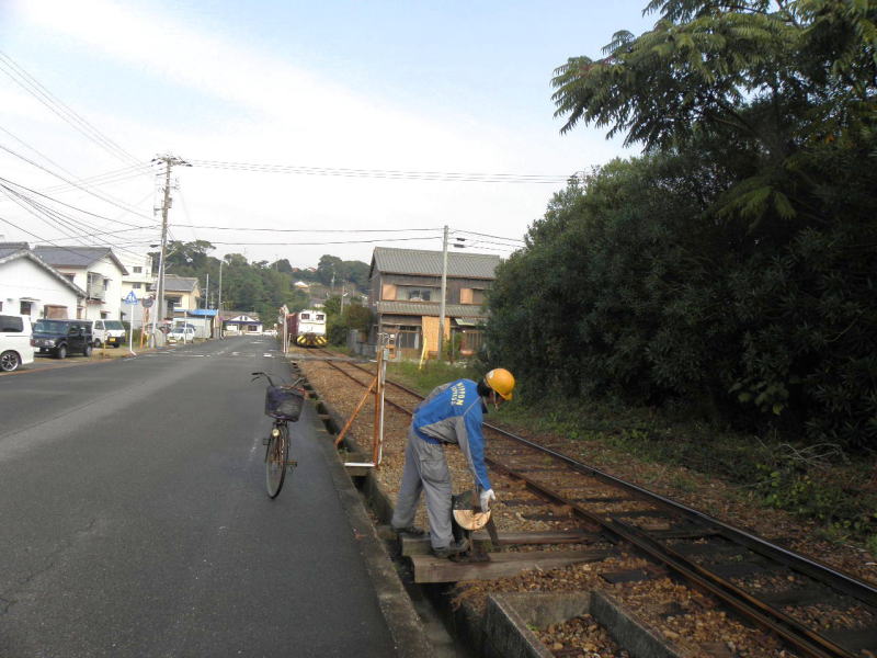 | 想像した通り時速7~8Kmの超徐行運転。踏切に引っ掛かると大変。 音を聴く (ゆっくり過ぎて何の音か分かりませんが。ヘッドフォン推奨) |
